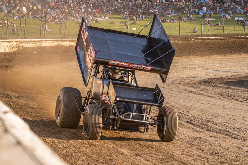 Starks opened Saturday’s show by driving from sixth to fourth place in a heat race. That locked him into the fully inverted, 50-lap feature.